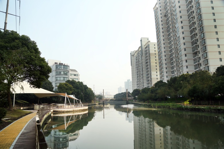工程内容:漕河泾(新泾港-虹梅路)、蒲汇塘(古北新城段北岸)等2条(段)河道的两侧人行道、护岸、绿化种植、景观土建等维护修整,河道长约2233米。