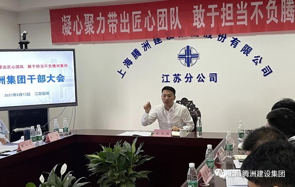 6月13日14时,腾洲建设集团在江苏盐城华邦国际东厦江苏分公司会议室召开了“凝心聚力带出匠心团队,敢于担当不负腾洲重托”主题干部大会。此次大会旨在听取基层意见建议,端正干部思想,加强团队能力建设,推进管理制度完善。集团公司高管、中层干部、项目经理、项目负责人和部分基层员工代表共计41人参加会议;会议由陈尚文副总裁主持。公司董事长兼总裁周昌海出席并作重要讲话。